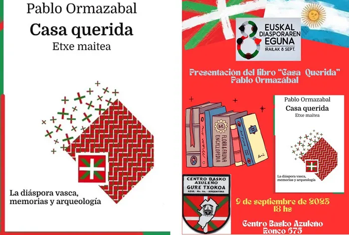 Mañana, sábado 9 de septiembre, a las 18 horas, en la casa vasca sita en Ronco (ex Alvear) 675, el Lic. Pablo Ormazábal presentará su libro "Casa Querida. Etxe Maitea. La diáspora vasca, memorias y arqueología.